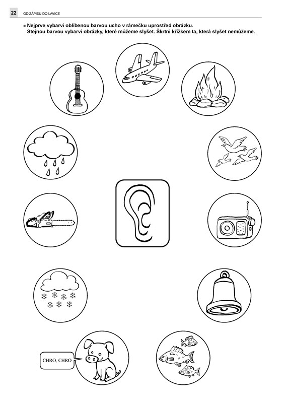 Další sešit edice Od zápisu do lavice obsahuje 45 pracovních listů se cvičeními, které zábavnou formou rozvíjejí sluchové vnímání (např. kolik slabik má slovo, jakou hlásku ve slově slyším, trénink sluchové paměti, hláskování slov, posloupnosti – co je před, za, skládání slov do věty apod.). Úlohy jsou koncipovány tak, aby se zároveň zapojilo co nejvíce smyslů a rozvíjela se jemná motorika i grafomotorika.
