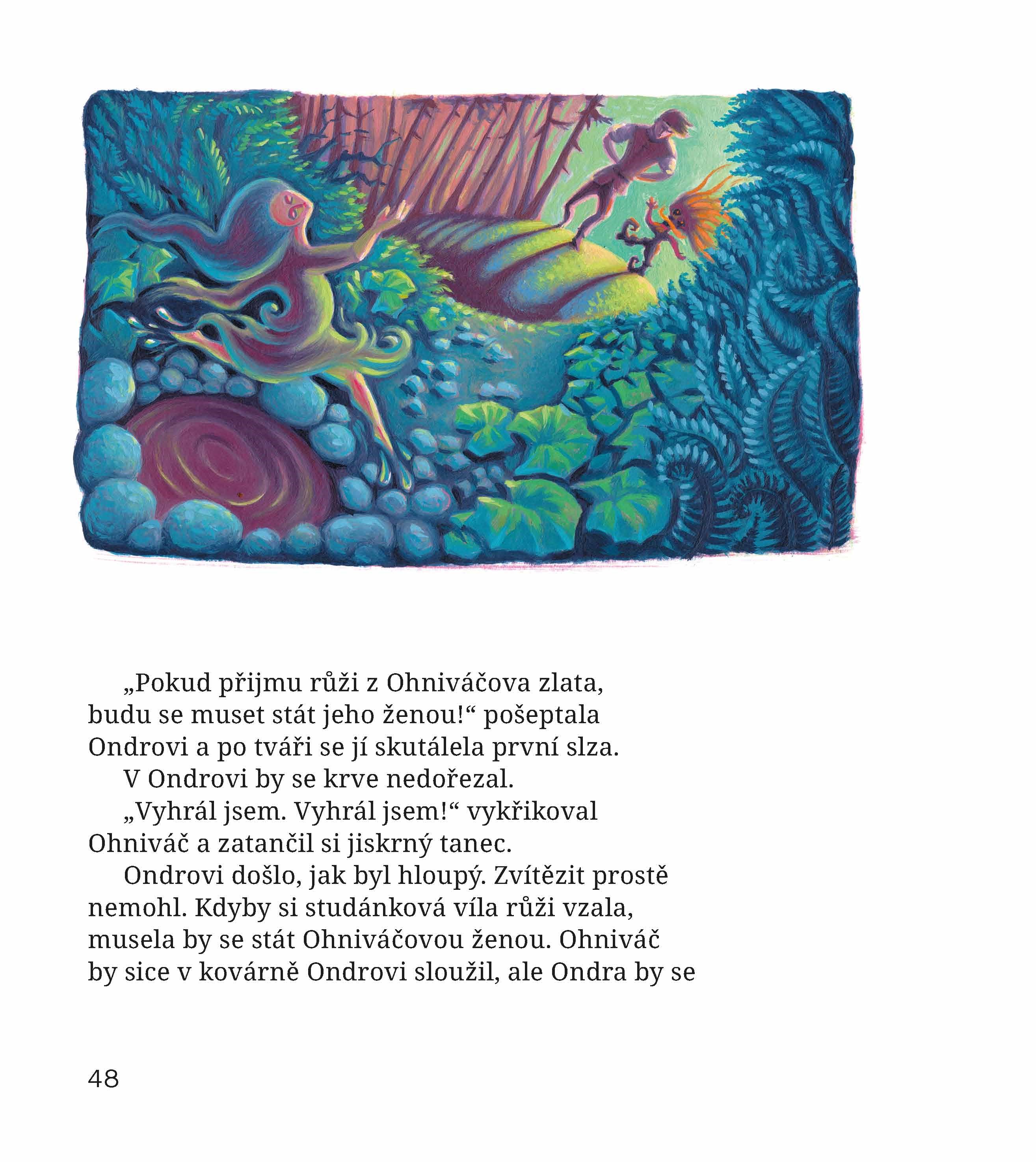 Byl jednou jeden kovář a ten měl tři syny. Byli to statní mládenci a práce jim šla od ruky, ale starý kovář se přesto trápil. Jednoho večera ho ze zamyšlení vytrhl mužíček, který vyskočil z plamenů a nabídl mu pomoc… Tak začíná tato překrásná klasická pohádka a tak vstupujeme do světa, kde se prohánějí draci a tančí víly, kde odvážní hrdinové plní těžké úkoly a kde upřímná láska nakonec přemůže zlé síly.