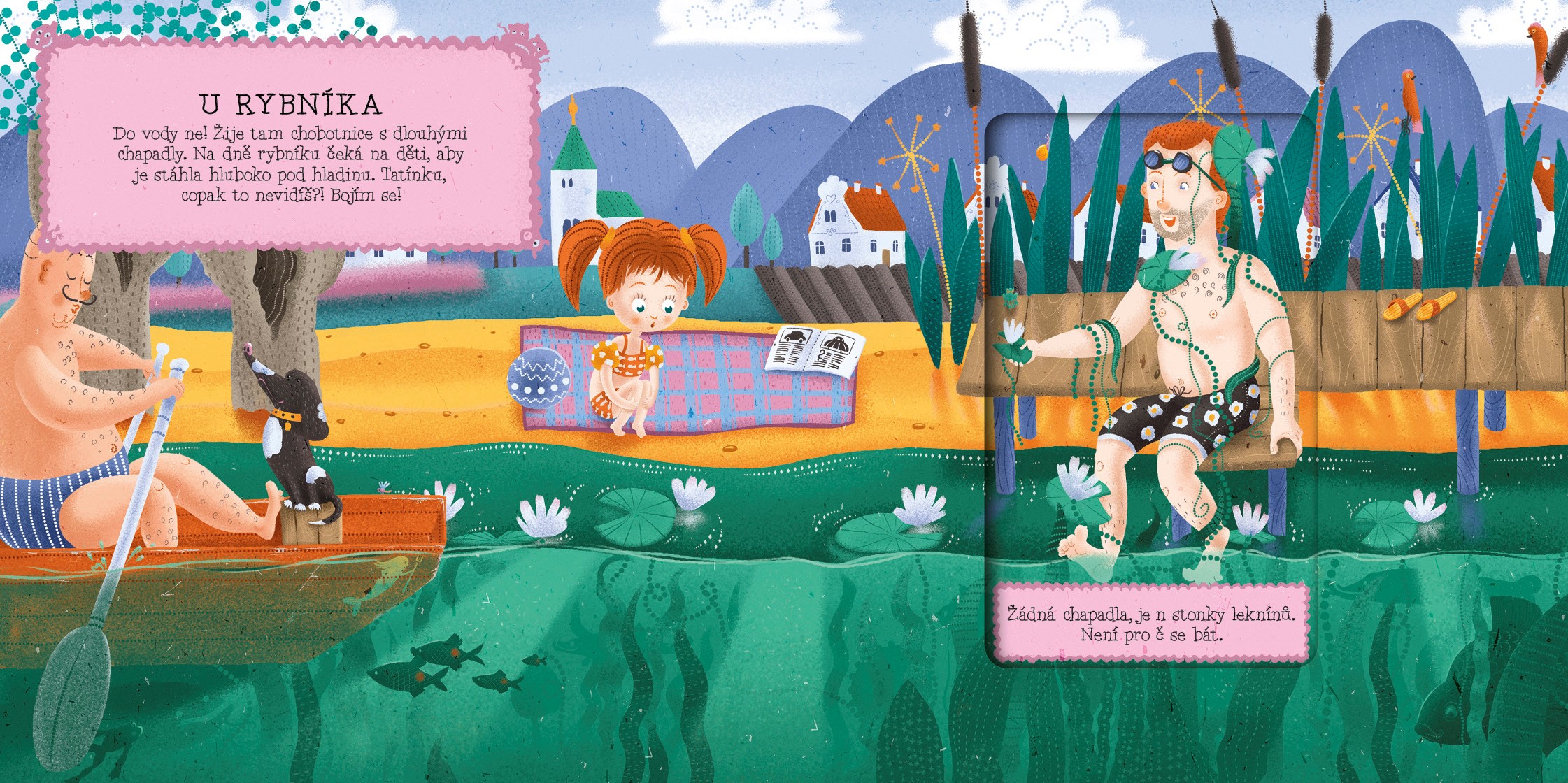 Kdo z nás se nebojí? Někteří dokonce hodně! Bojí se u doktora, ve vodě, za bouřky…bojí se pořád. Je vidět, že nad nimi převzal vládu strach. Předvádí jim věci tak, aby měl stále navrch. Pozorují svět jeho očima. S knížkou Strach má velké oči se ale mohou chvíli zastavit a rozhlédnout se pěkně po svém. Vážně je doktor černočerný čaroděj a v babiččině rybníku plavou chobotnice? Když se malý čtenář koukne blíž, pozná, jak se věci mají skutečně. Pokud jeho strach neodezní na první pohled, ať otevře knihu ještě jednou a úspěch je zaručen.
