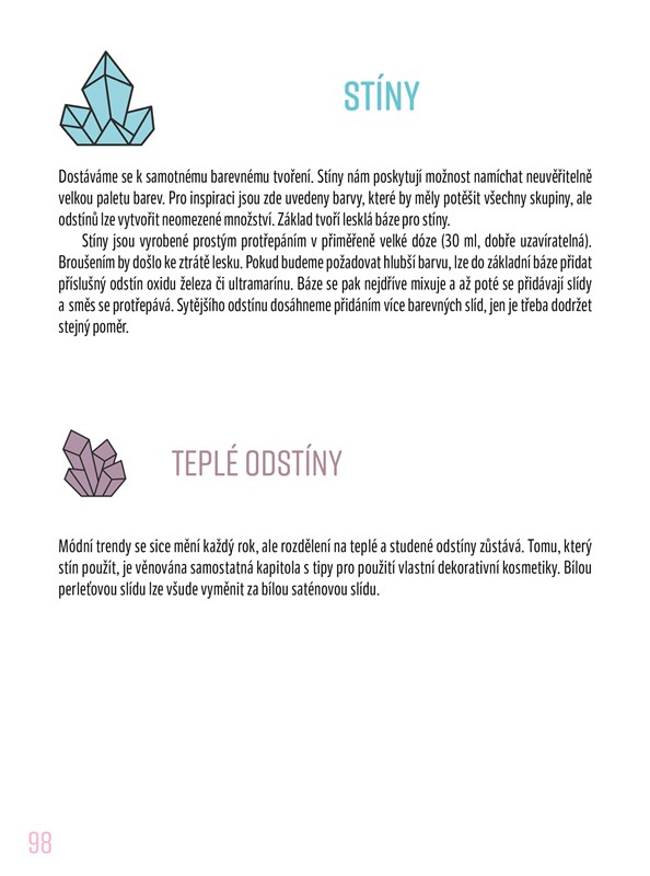 Namíchejte si vlastní pudry, oční stíny, make-up, ale i řasenky, tekuté linky nebo rtěnky. Řada surovin, které použijete k jejich přípravě, má pozoruhodné vlastnosti, jejichž vzájemnou kombinací získáte neuvěřitelně pestrou škálu vlastností, které přizpůsobíte přesně svému typu a barevnému tónu pleti. Vydejte se na cestu barevné alchymie a s pomocí receptů popsaných v této knize objevte svět domácí minerální kosmetiky.