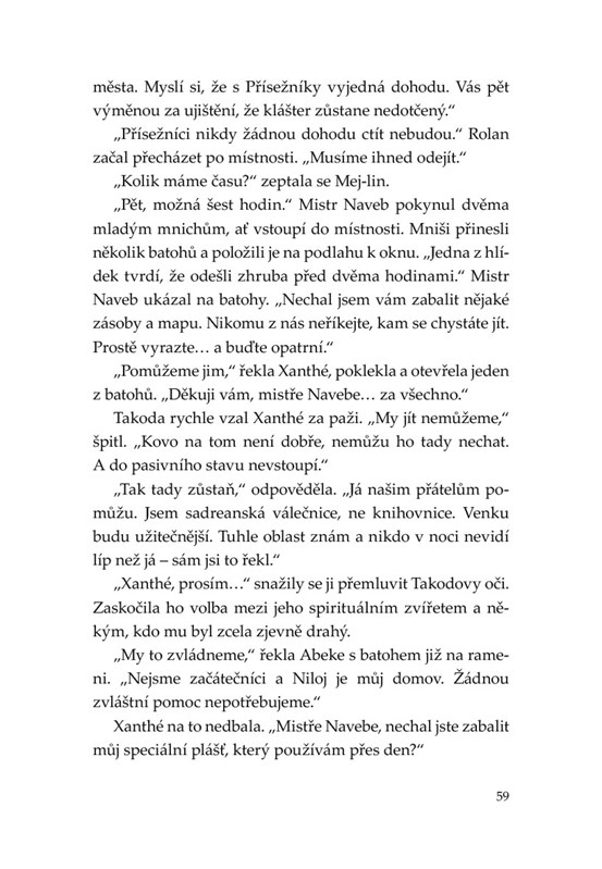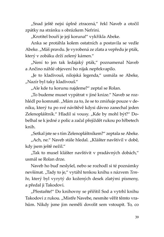 Conor, Abeke, Mej-lin a Rolan – kdysi hrdinové Erdasu, nyní falešně obvinění psanci pronásledovaní krutými žoldáky, Přísežníky. V naději, že naleznou odpovědi na své otázky prchají do pouštního města Niloje. Objeví zde tajnou knihovnu, plnou starých knih a svitků, ve kterých je uchovávána prastará moudrost Erdasu. Tu pomáhají střežit jejich staří známí: Takoda, Xanthé a opičák Kov. Nebudou teď díky přítomnosti Zelenopláštníků vystaveni zbytečnému nebezpečí?
