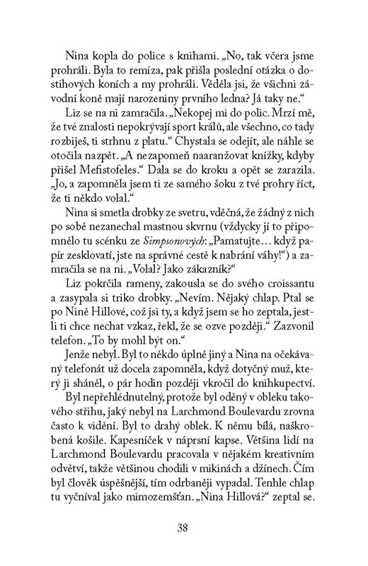 Dokud se život Niny točí jen kolem knih, všechno je v naprostém pořádku. Nechává se unášet cizími příběhy a obdivuje fiktivní hrdiny. Realita jí až tak nevyhovuje, protože je nevyzpytatelná a na každém kroku číhá nějaké překvapení. Jedním z jich je Tom, kterého pozná na pub kvízu. Jak jim to ale může klapat, když Nina se vyzná jen v literatuře a Tom je machr přes sporty?