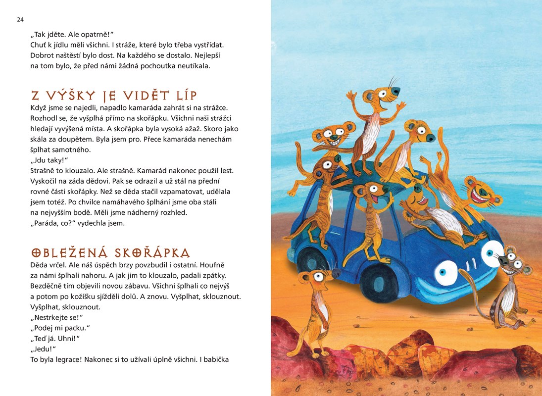 Hravé vyprávění o roztomilých surikatách se spoustou rébusů a zajímavostí v přiloženém sešitě