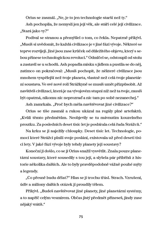 Ash se touží stát pilotkou, aby se mohla účastnit boje v meziplanetární válce a pomstít svoji rodinu. Během zkušebního testu však naprosto selže. Zdánlivá prohra se otočí ve výhru, když jí nabídnou prestižní práci strážkyně Knihovny na konci vesmíru. Dostane za úkol sbírat a chránit artefakty, informace a důležité záznamy o všech planetách tak, aby chod vesmíru zůstal v harmonii.
