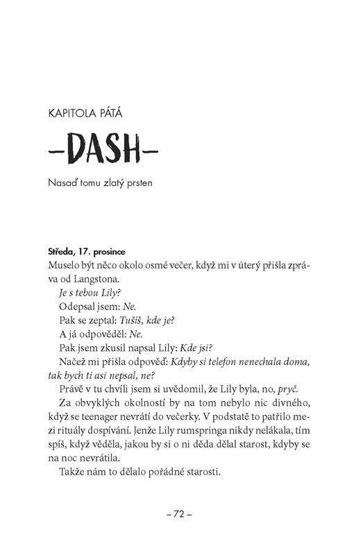 Do Vánoc – nejoblíbenějšího Lilyina období v roce – zbývá už jen dvanáct dní a Dash, její bratr Langston a jejich nejbližší přátelé se musí vrhnout do víru Manhattanu, aby Lily pomohli znovu objevit jedinečné kouzlo předvánočního zasněženého New Yorku.