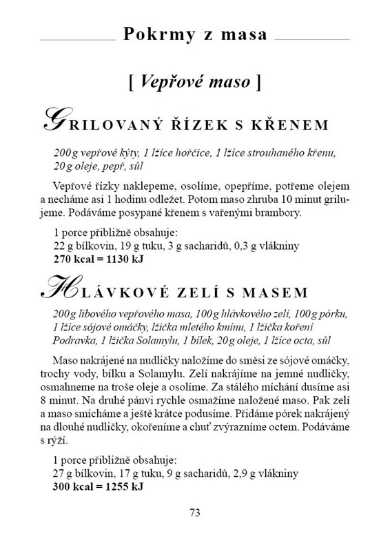 485 receptů pro diabetiky a pro všechny ty, kteří se chtějí stravovat zdravě, ale chutně. Výpočtové pravítko nutričních hodnot. Zpracovává přehledným způsobem nejnovější zásady stravování pro diabetiky, ale především pro všechny, kterým záleží na racionálním způsobu stravování. Součástí všech receptů jsou, mimo použitých surovin a popisu zpracování, i přepočty živin a potravin, včetně kalorických hodnot. Každý si tak může upravit jídelníček podle svých aktuálních potřeb, včetně nastavení léčby diabetu.