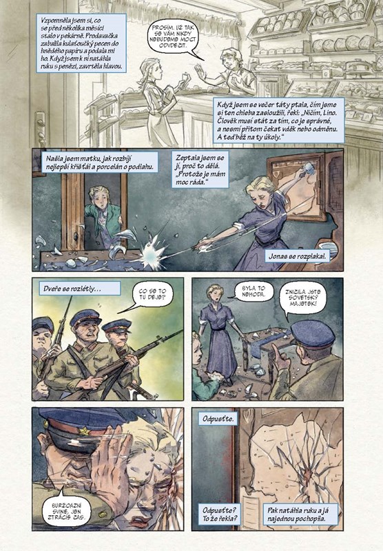 Píše se rok 1941. Lině je patnáct let a těší se, že po prázdninách půjde na uměleckou školu. Jednoho večera do jejího domova ale vtrhne sovětská tajná policie. Linu, jejího brášku i jejich maminku čeká deportace do pracovních táborů na Sibiři. Dívka musí v nelidských podmínkách bojovat o svůj život i o životy všech, které miluje. Přitom tajně schraňuje vzkazy v podobě kreseb s nadějí, že je jednoho dne někdo objeví a vyjde najevo, jakým peklem si lidé v pracovních táborech museli procházet.