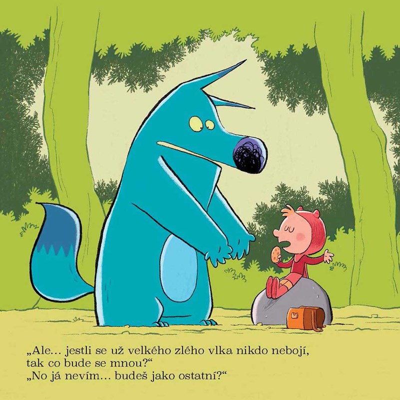 Vlk číhá v lese na něco (nebo spíš někoho) k snědku. Když narazí na malou holčičku v červeném, zařve, aby ji náležitě polekal. Jenže ona se nelekne ani trochu. Obrázková knížka o tom, že velcí zlí vlci už dávno vyšli z módy...