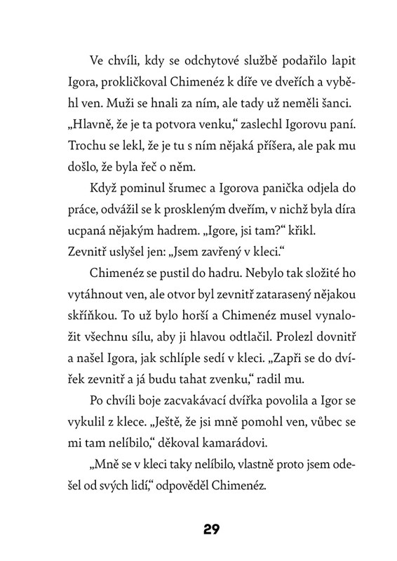 V kleci je mu těsno a nudí se. A tak když se objeví příležitost, uteče Chimenéz pryč z domu. Poradí si domácí králíček v neznámém světě, kde krásně hřeje sluníčko a voní tráva, ale také žijí tvorové, kterým je radno se vyhnout? Ubrání s ostatními zvířátky svůj nový domov před zbouráním a setká se ještě se svojí bývalou rodinou? Pojďte s Chimenézem provést pár lumpáren, potkat nové kamarády a zažít spoustu legrace i napětí.