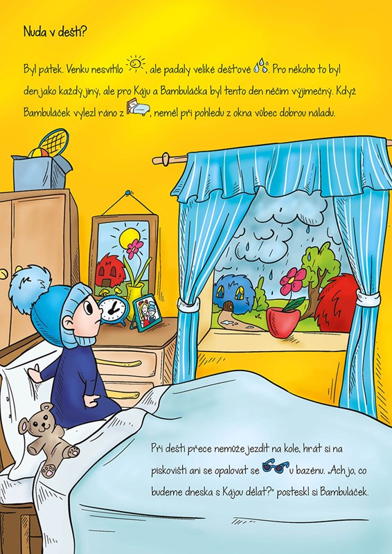Ahoj! My jsme Kája a Bambuláček. :) Kamarádská culíkatá holka a malý zlobivý kluk s modrou bambulí. Nerozlučná dvojka, která společně s dětmi ve svých videích na YouTube kanále Kája a Bambuláček prožívá spoustu bláznivých dobrodružství. :) Hrajeme si, tancujeme, zpíváme a se svojí vlastní hudební šou koncertujeme po celé České republice. Tentokrát jsme si pro vás ale připravili něco, co tu ještě nebylo. Něco opravdu bambulkózního. :) Knížku plnou omalovánek, úkolů, doplňovaček a her. Prostě knížku plnou bambulkové zábavy! :)