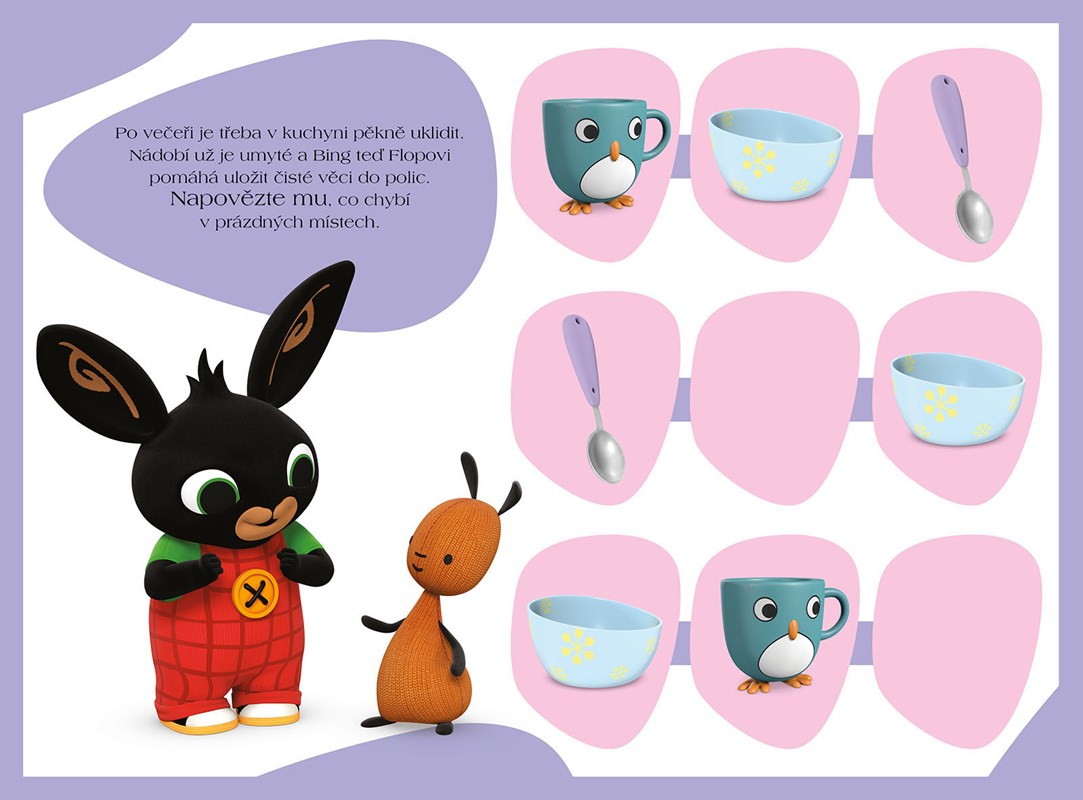 Chutné jídlo se teprve připravuje a někdo je u stolu celý netrpělivý? Bing a jeho kamarádi jsou pro dítě, které se těší na snídani, oběd nebo večeři, ideální společnost. Nedočkavý jedlík se zabaví jednoduchými, ale zároveň nápaditými úkoly, a jednotlivé stránky z odolného papíru lze snadno vytrhnout a použít jako prostírání. Je to prostě recept na skvělou zábavu!