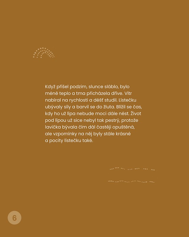 Poetický ilustrovaný příběh lipového listu o smiřování se s cyklem života i smrtí a odborné články terapeutů o tom, jak a proč s dětmi o koloběhu života a smrti mluvit.