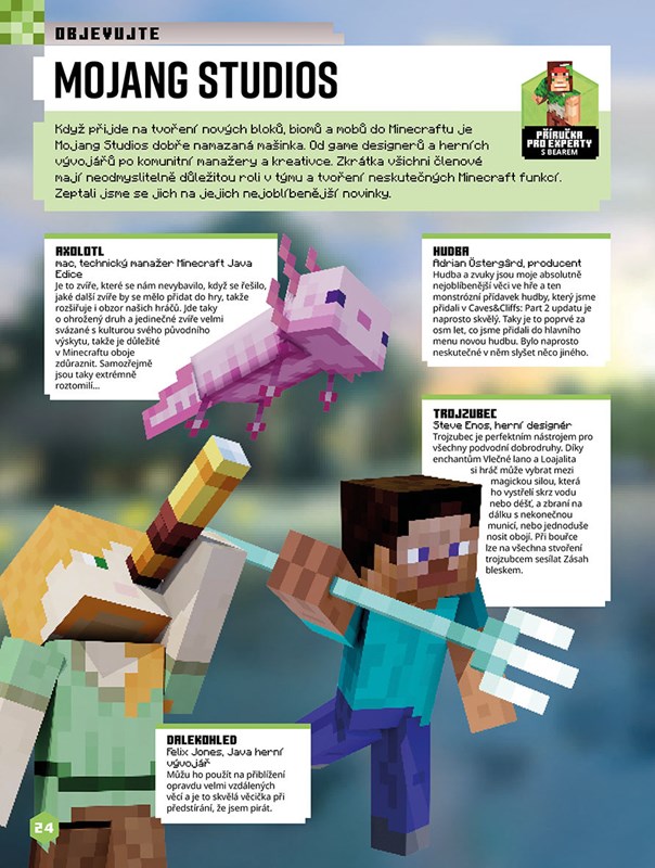 Oficiální ročenka Minecraftu je na světě! Pojďte prozkoumat, co všechno se děje v hráčské komunitě i přímo ve hře! Třeba nejoblíbenější vylepšení, která přibyla během posledních updatů. Nebo různé návody na vytvoření vlastního moba či ovládání supermocných příkazových bloků. A taky se dovíte, kde nadace Mojangu pomáhá stavět lepší města.