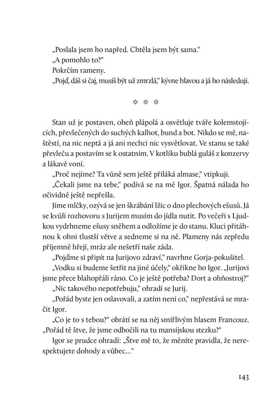 Jedna z největších záhad v moderních dějinách Ruska je v této knize zpracována beletristicky, tak, jak ji dosud nepřiblížil nikdo: očima Ziny a Rustema, samotných aktérů výpravy. Poznáte skupinu devíti mladých lidí, jejich sny, touhy, radosti i starosti, nasednete do vlaku ve Sverdlovsku, poputujete Uralskou divočinou, budou vám křehnout prsty a bude vás obcházet hrůza.