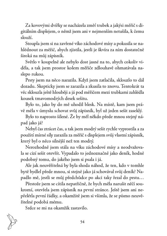 Představ si, že se nastěhuješ do nového bytu a ve zdi koupelny najdeš schovaný svůj vlastní deník. Zápisy v něm jsou skoro dva roky staré a ty si nevzpomínáš, že by sis něco takového kdy psala, natož že bys v tom bytě už někdy byla.