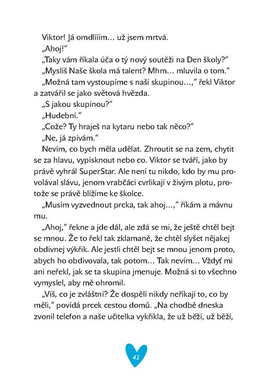 Devítiletá Laura má největší nohu ve třídě, geniálního malého bratra, dvě namyšlené nepřítelkyně-zákeřňačky a jednu super kámošku. Kromě toho dostane od spolužáka Lukiho modré srdce a moc neví, co si o tom myslet. Přes to přese všechno je Laura holka jako každá jiná: jednou se trápí a jednou směje. Tak už to asi u zamilovaných dívek bývá…