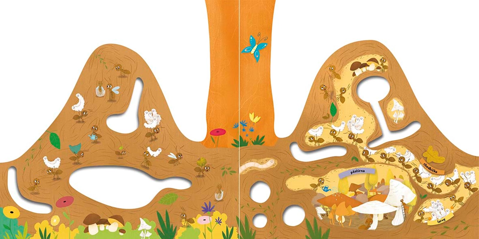 Představ si, že jsi mravenec a strávíš jeden den v mraveništi. Jaké to asi bude? Celý den budeš pořád někam utíkat – uklízet a hloubit chodbičky, hledat různá semínka, abys měl co jíst, a až tě to přestane bavit, vylezeš si úplně nahoru na vršek mravenčí kupy, aby ses opaloval a nahříval si tělíčko. Ale dost už bylo řečí. Víš co? Udělej si pohodlí a pojď se s námi podívat přímo do mraveniště…