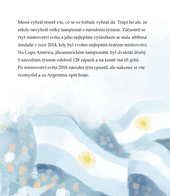 Od té doby toužil po jediném - hrát fotbal každý den a stát se výborným fotbalistou. Měl velký talent, ale bez velké píle a úsilí by svého snu nikdy nedosáhl. Dnes jeho jméno zná každý, ten malý klučina se jmenoval Lionel Messi a je jedním z nejlepších hráčů všech dob.