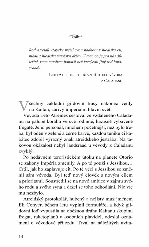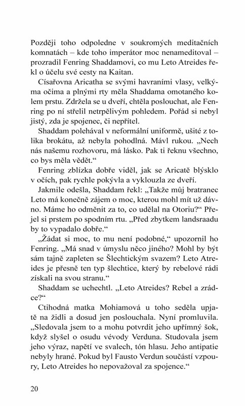 Druhá část třídílné série z vesmíru Duny se odehrává v době bezprostředně předcházející klíčovým událostem legendárního románu Franka Herberta, v bouřlivých časech, než šlechtický rod Atreidů přesunul své operace z domovské planety Caladan na neznámý pouštní svět Arrakis.