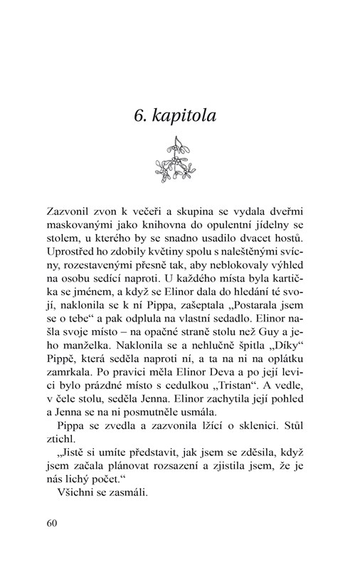 Elinor Noelová, zvaná Nory, vede v Londýně malý antikvariát a je se svou nenáročnou existencí spokojena. Nikdy ji neokouzlil extravagantní životní styl jejích spolužáků z privilegované soukromé školy Braddon-Hartmead, kterou navštěvovala jako stipendistka. Přes všechny rozdíly si s nimi však vybudovala pevné pouto, přetrvávající i po letech. Dva spolužáci, kteří se chystají vzít, nyní dokonce pozvali celou partu na týdenní oslavu před svatbou na hradě nedaleko bývalé školy. Nory ale netuší, že se na anglickém venkově kromě přátel setká i s dalším starým známým, nyní hlavním hradním zahradníkem. Zatímco s ním během předsvatebních dní tráví víc a víc času, zjišťuje, že se do svého dětského „úhlavního nepřítele“ po uši zamilovala.