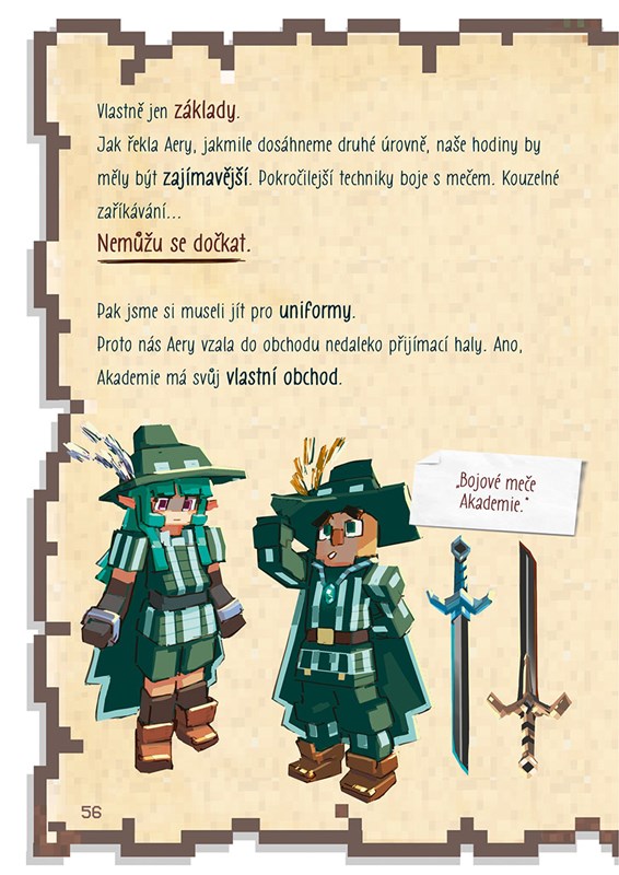 Minus a jeho přátelé už zažili hromadu dobrodružství. Byli pilnými studenty, absolvovali intenzivní výcvik ve své vesnici, odráželi útoky nestvůr vyslaných Herobrinem... a dokonce uspěli ve své první výpravě v Soví příhradě! Největší dobrodružství jejich života ale začíná právě teď: musí se dostat do Aetherie, hlavního města celé říše. Jaká nová dobrodružství čekají Minuse a jeho přátele na proslulé Akademii? Podaří se jim stát se legendárními bojovníky a konečně se postavit samotnému Herobrinovi?
