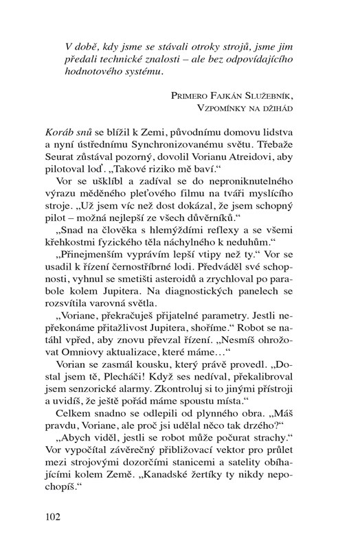 Další pokračování nejúspěšnější science-fiction ságy všech dob. Děj se vrací na samotný počátek, jímž byl Služebnický džihád, zlomový bod v historii Známého vesmíru, prapříčina Velké konvence. Příznivci složitého vesmíru Herbertovy Duny se konečně dozvědí, jak se to všechno vlastně stalo.