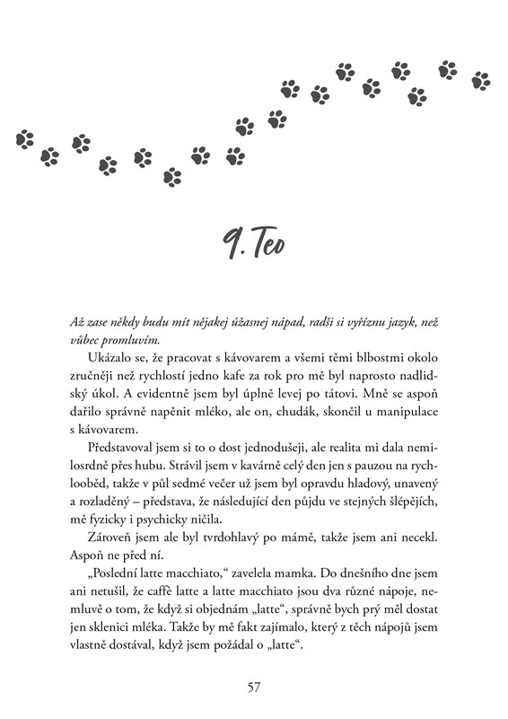 Teo se nedávno přestěhoval z Prahy na střední Moravu a zatím si na nový život těžce zvyká. Nikoho tady nezná, připadá si sám, tím spíš, že se celá rodina vyrovnává s tetinou smrtí a provozováním kavárny, kterou po ní převzali. S novým prostředím se nechce sžívat, když se na vysokou stejně hodlá vrátit do Prahy. A jistý protivný Villy mu taky dvakrát nepomáhá.