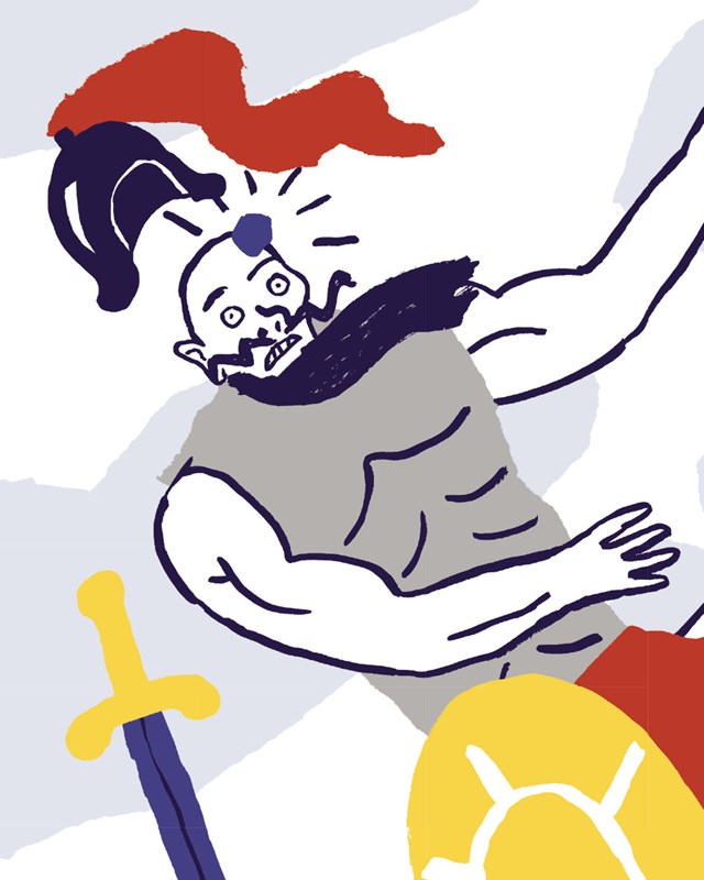 Dobrodružný příběh o tom, jak malý David přechytračil a porazil obra Goliáše, ilustrovala Nikola Hoření.