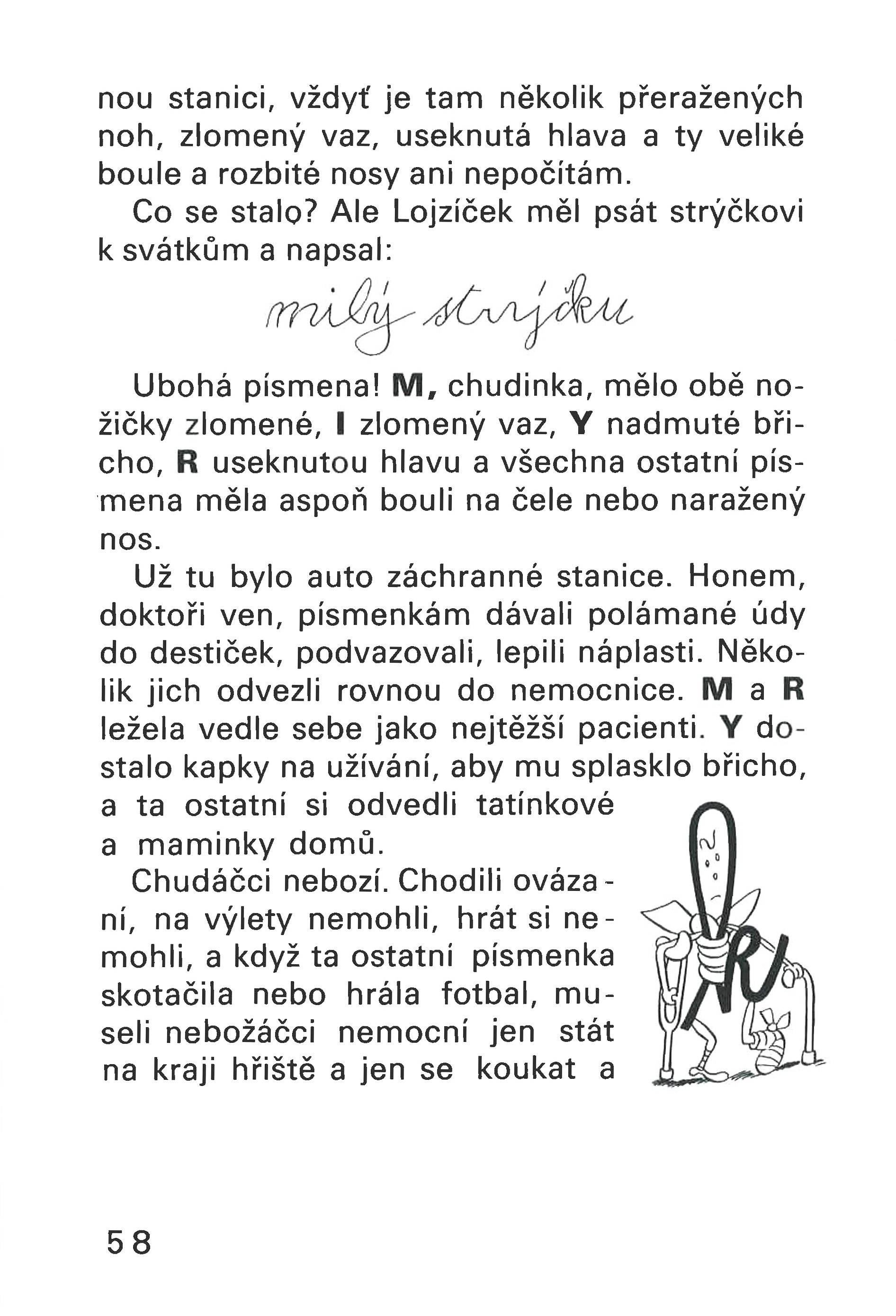 Veselá knížka seznamuje děti prostřednictvím Ferdy Mravence s jednotlivými písmeny abecedy.