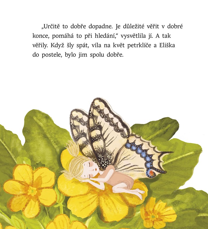 Nastává jaro. Příroda se probouzí, květiny kvetou a na svět přicházejí motýli. Ovšem ne z každé housenky se stane motýl. Jsou i takové, ze kterých se vylíhne motýlí víla. Křehká a jemná bytost, laskavá jako květinová vůně. Motýlí vílu Elvíru ale postihla nepříjemná nehoda. Dokáže s pomocí lidské kamarádky Elišky zvládnout nepřízeň osudu? A kdo pomůže couravému kocourovi?