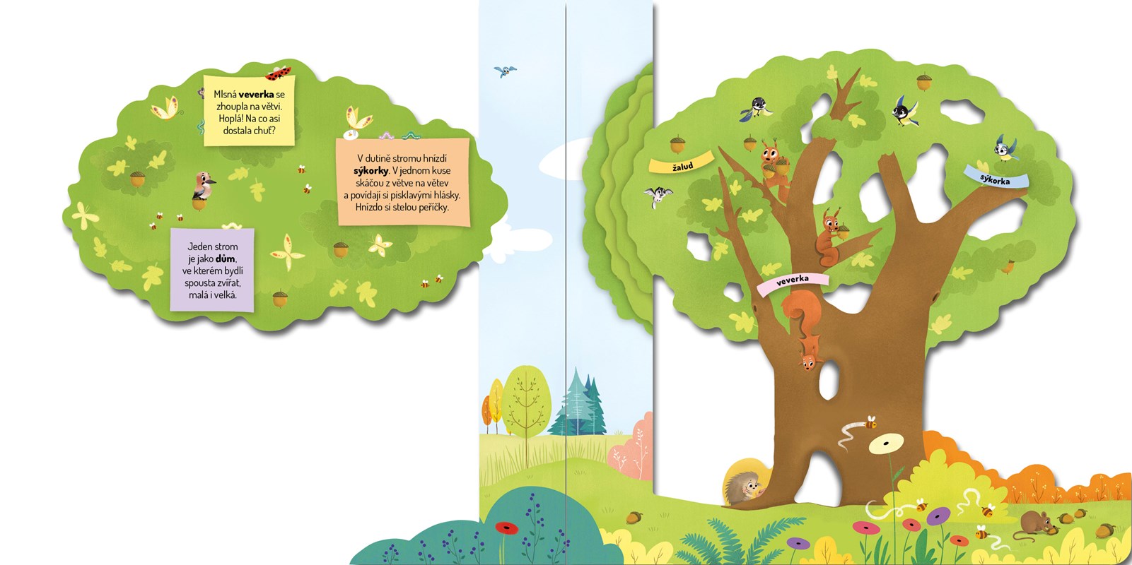 Vítr se prohání vysoko v koruně stromu. Větvičky o sebe pleskají a kdesi dole u velké škvíry někdo zaklepal na kmen stromu. „Datle, co to vyvádíš?“ zavrtěla sojka hlavičkou. „Podívej, vzbudil jsi veverky!“ Pavouček zavěšený na jemném vlákně mezitím utkal další pavučinu a v hnízdě zakukala kukačka. Tak je to na stromě skoro každý den. Jeden dub je jako dům, ve kterém bydlí spousta zvířat. Některá z nich už možná znáš. Tak pojď dál, vezmeme tě dovnitř, na návštěvu do starého stromu…