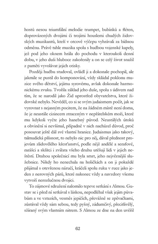 Je léto 1910, poslední rok života Gustava Mahlera, oslavovaného i nepochopeného moderního skladatele, Žida, který veřejně přijal křesťanství, aby se mohl chopit taktovky orchestru vídeňské Dvorní opery a zároveň Vídeňské filharmonie. Jeho ženou je ve své době nejžádanější rakouská debutantka, svůdná Alma Mahler, která stála modelem Gustavu Klimtovi, učila se komponovat u Alexandera Zemlinského a svou ráznou krásou omámila řadu významných mužů. Po Mahlerově smrti se stane milenkou malíře Kokoschky, potom manželkou architekta Waltera Gropia a nakonec se vdá za spisovatele Franze Werfela.