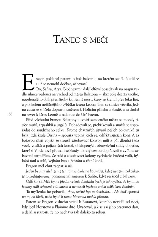 Dlouhé měsíce výcviku a bojů přinesly mnohá vítězství a naději, ale také srdcervoucí ztrátu. A ta nejtěžší bitva je přitom teprve čeká: musí se postavit samotnému Galbatorixovi. Aby zvítězili, potřebují být neskutečně silní a odvážní. Pokud to nedokážou oni, neporazí Galbatorixe nikdo. Druhá šance neexistuje.